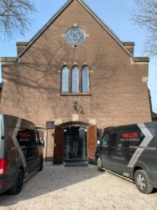 Achter de kerk was nog een pastorie die we hebben gerestaureerd en een nieuw deel hebben achter gebouw zie project: verbouwing pastorie Westervoort.