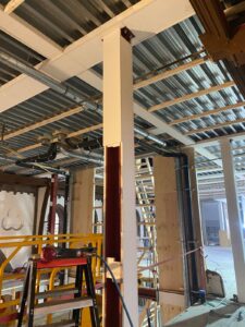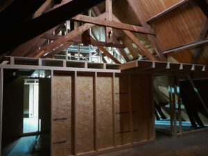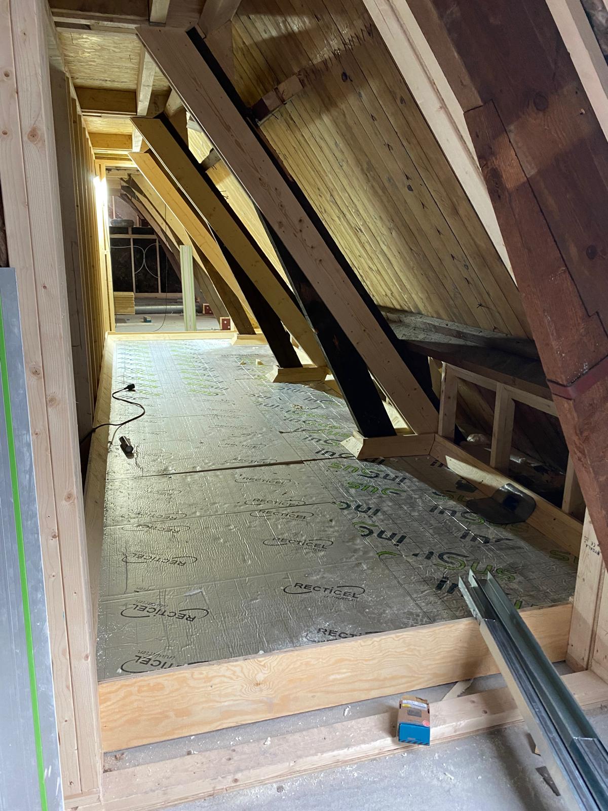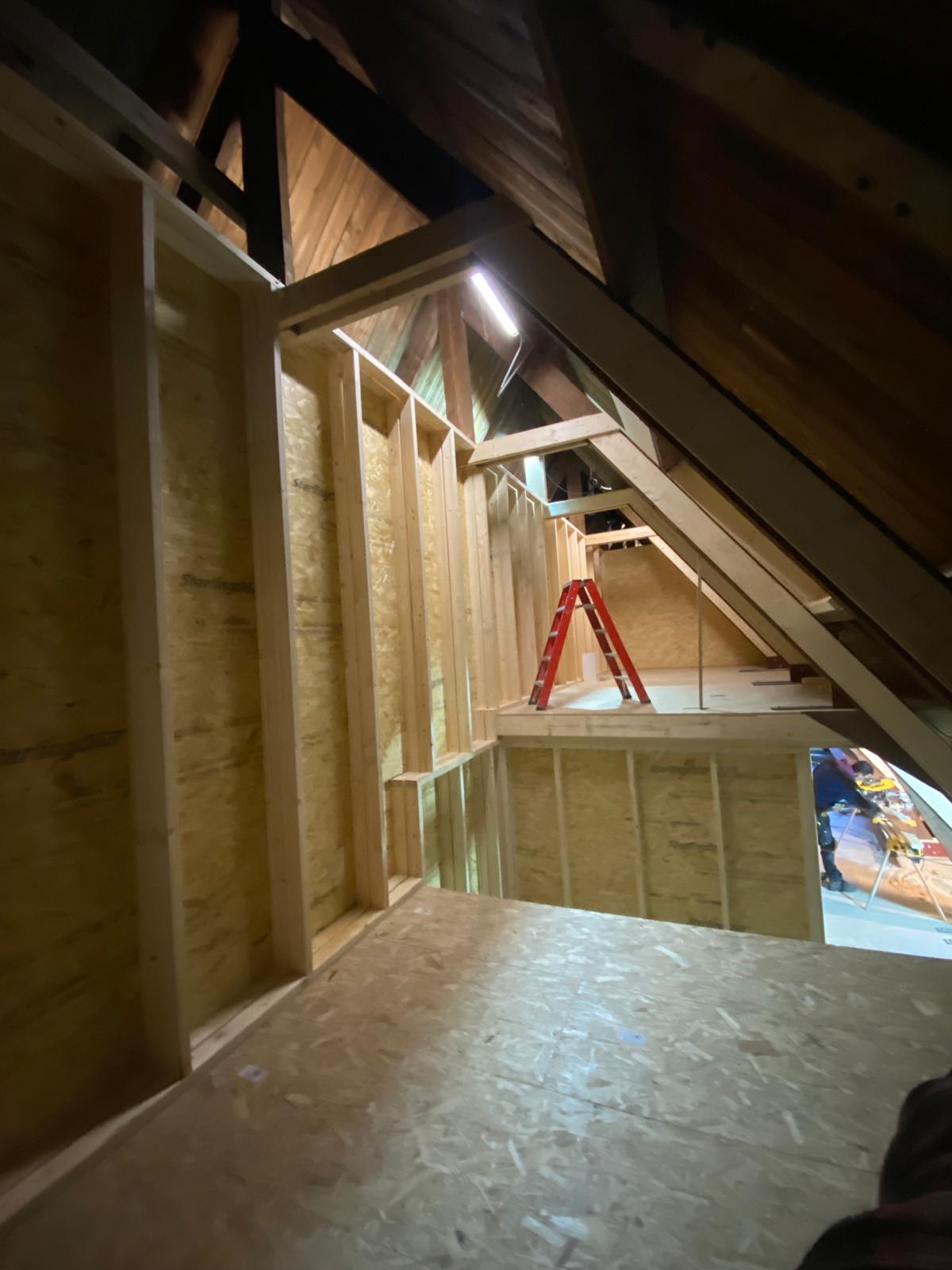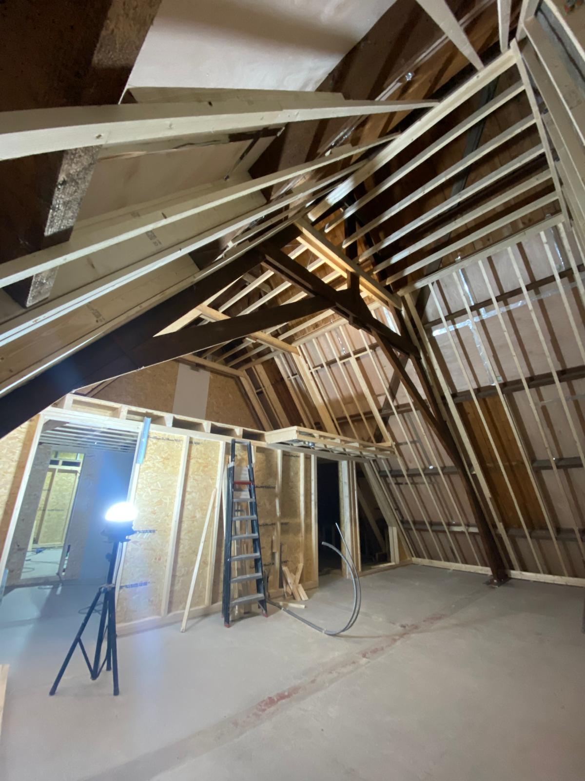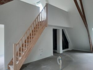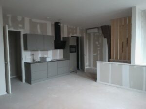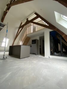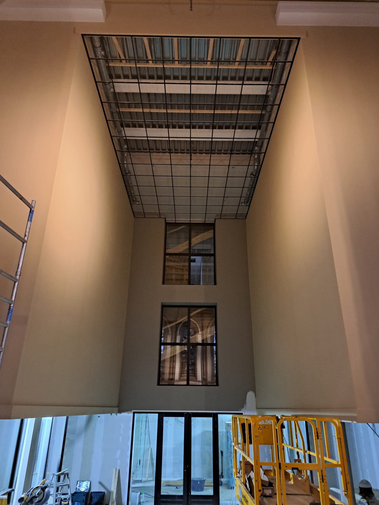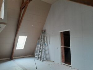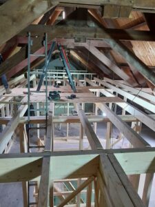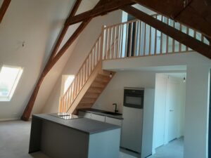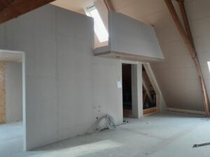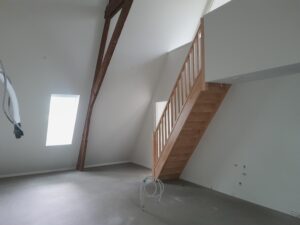 Wij hebben er 4 verdiepingen in gemaakt met een volledig inpandig staal constructie zodat de buiten kant van de kerk zo veel mogelijk intact bleef, Daar op hebben we staalplaat vloeren gelegd en volgestort met beton waar door ze 3 verdiepingen met betonvloer hebben, En daar nog een houten vloer als 4e verdieping zodat de bovenste appartementen 2 verdiepingen hebben. Omdat alles te kunnen dragen hebben ze er 39 boorpalen in gedraaid tot 6 meter diep.Met op de 1e,2e,3e verdiepingen 14 appartementen met een bijzondere uitstraling met togen en gewelven waar nog veel van in tact en in het zicht zijn gebleven, Met ieder een eigen balkon met op de bovenste verdieping inpandige balkons. Glas in lood vervangen door nieuw geisoleerde kunststof kozijnen geplaatst in voorzet wanden waardoor alle togen bewaard konden blijven en toch een mooie licht in val kreeg. op de begane grond is nog een studio, dokterspraktijk, rouwcentrum en nog een zaal voor 80 personen met podium gevestigd. dit alles werd door een kleine opening gedaan (zie foto3) om de buiten kant van de kerk zijn uitstraling te houden, en voor die opening is daarna een uitbouw gemaakt