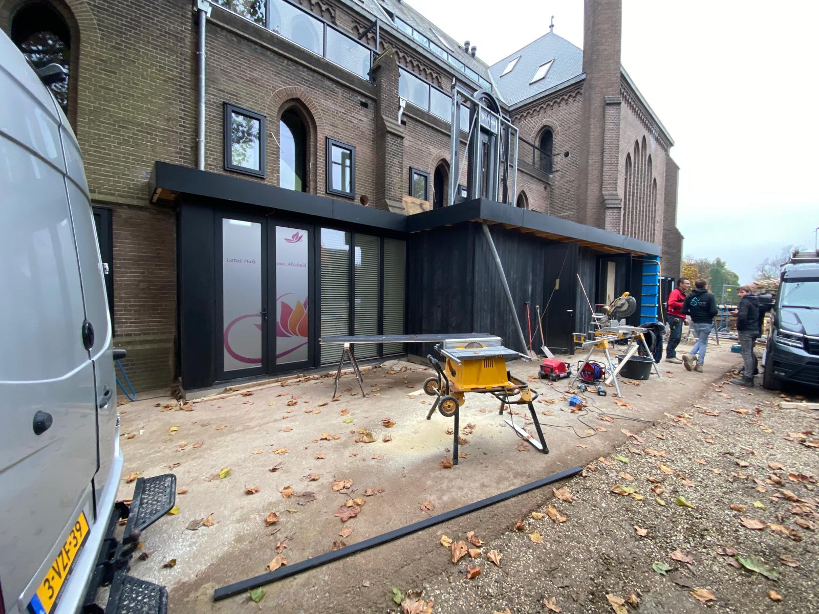Achter de kerk was nog een pastorie die we hebben gerestaureerd en een nieuw deel hebben achter gebouw zie project: verbouwing pastorie Westervoort.